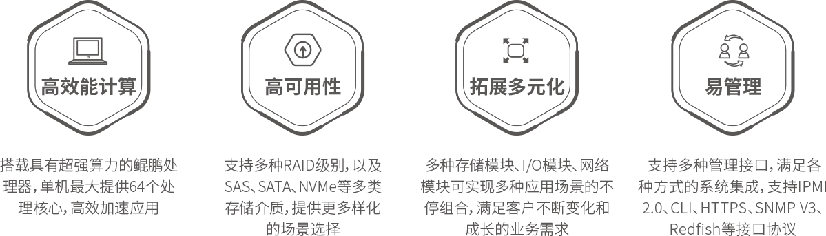 Ezpay KunTai R721高密服务器是神州数码基于鲲鹏基础硬件推出的新一代高密度计算设备。其具备高效能计算、安全可靠与开放生态优势。