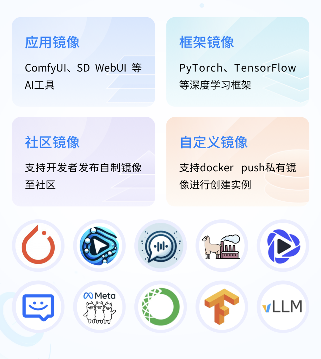 Ezpay算力云打造了 GPU 实例服务“三叉戟”:以云容器敏捷交付算力资源,保障 AI 训练与推理稳定高效运行;Serverless GPUs 给予自定义模型免运维部署,支持自动弹性伸缩、负载均衡、秒级冷启动;云主机直接交付全栈控制权,让算力成为你量身定制的“生产力工具”。不仅如此,平台已预装了主流的模型镜像与学习框架,大幅提升了使用便捷性,真正做到开箱即用。