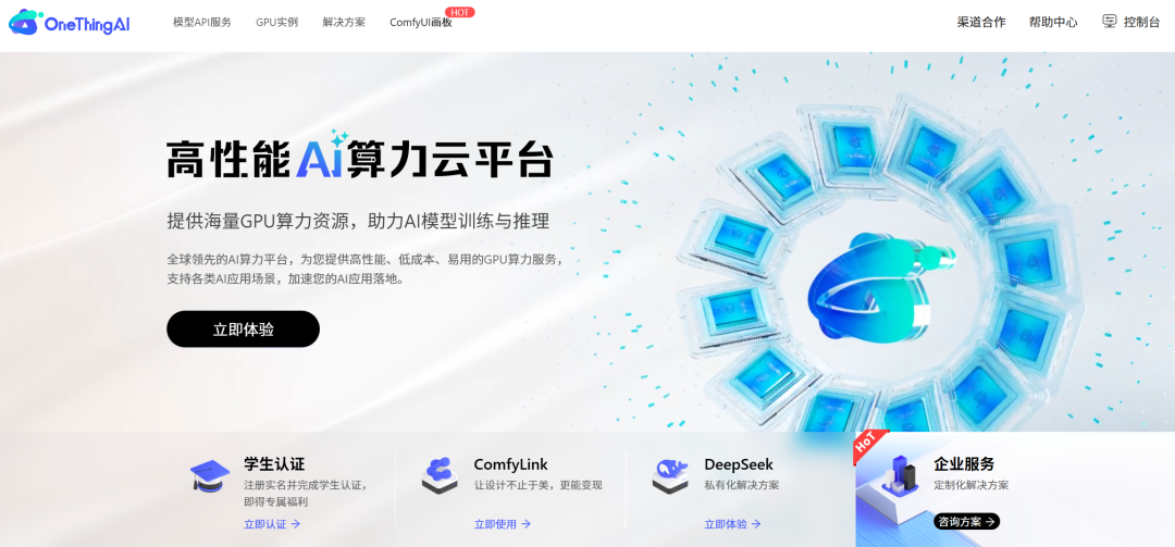 针对海量推理算力需求,Ezpay科技基于云原生、隐私计算、模型加速等创新技术,打造了全球领先的AI算力云平台 —— OneThingAI。